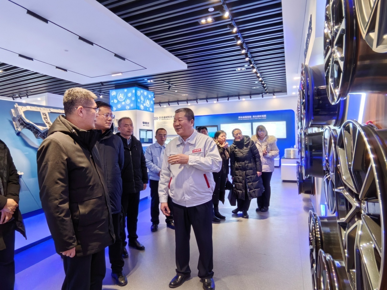 在立中研究院,立中集團董事臧立國向龍奮杰等領導匯報了立中集團40年發展歷程及在全球企業分布情況,鑄造鋁合金、鋁合金車輪、鋁基功能中間合金3個業務板塊已經發展成為行業領軍企業,立中集團自主研發及合作研發的新能源汽車一體化壓鑄免熱處理合金材料、高導熱合金材料、輕量化大規格鋁合金車輪、鋁基功能中間合金、航空航天級特種中間合金等產品滿足了國家戰略發展需求。
