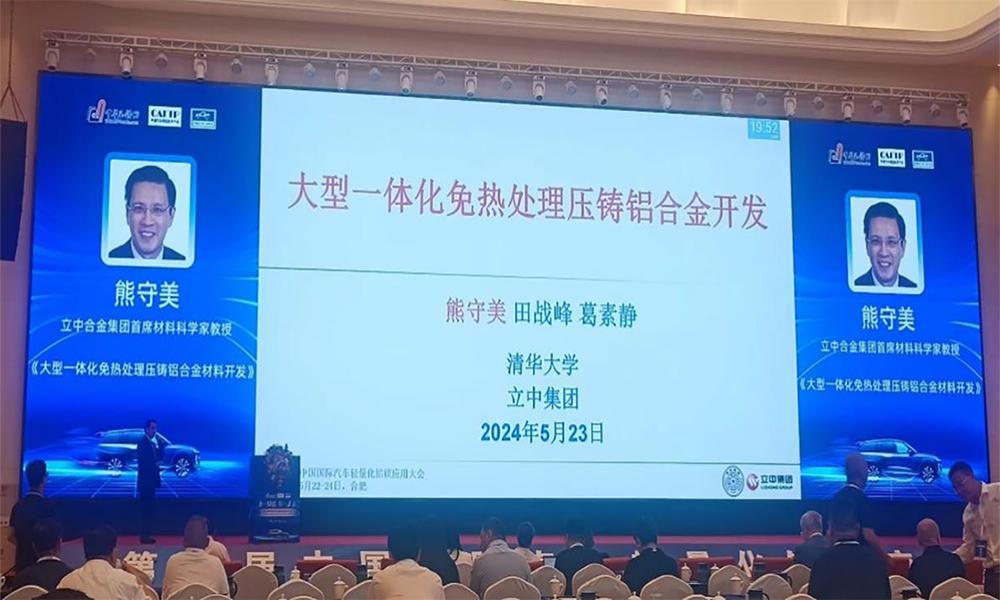 2024年5月22日至24日,第三屆中國國際汽車輕量化鋁鎂應用大會在安徽合肥圓滿舉辦,立中集團出席大會,并由立中集團首席材料科學家、清華大學熊守美教授做了《大型一體化免熱處理壓鑄鋁合金的開發》的主題報告,報告中發布并詳細介紹了立中集團與清華大學聯合研發的高強韌和高屈服兩款免熱處理鋁合金,以及立中集團自主研發的低碳再生免熱處理鋁合金等。